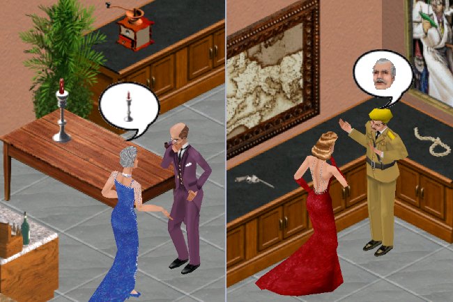 - Clues / Potential Weapons – Candlestick, Dagger, Lead Pipe, Revolver, Rope. These objects delete themselves after the case is solved, and reappear in different places when a new game is started.