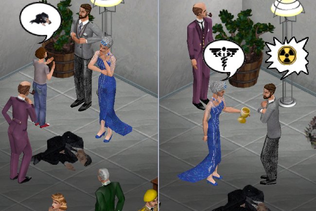This is a game-within-a-game that you and your Sims can play together. Dr. Bobby Black has been assaulted! This whodunnit mystery mini-game is a competition between your Sims and NPC potential suspects. Get Bobby Black’s body from Buy Mode and place it in an open space in your house or yard. Five possible weapons (clues) will then scatter around the house and five colorful NPC suspects (the other players) will arrive to begin their own investigations.