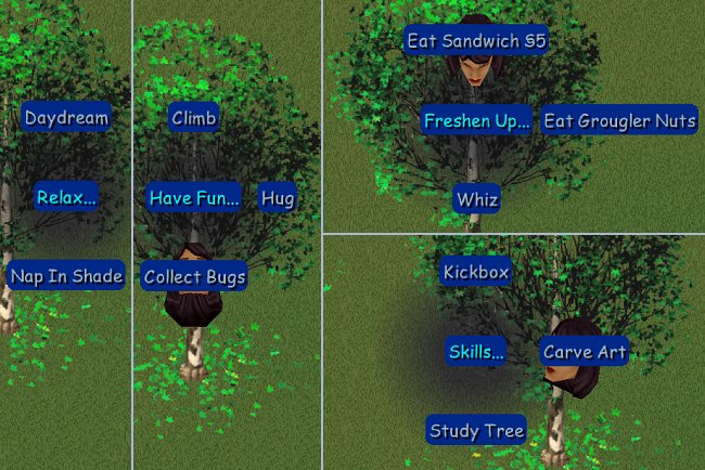 - Daydream – Relax under or around the tree and let your thoughts run free while you gain Comfort points and a small Energy boost. Pets can do this too.